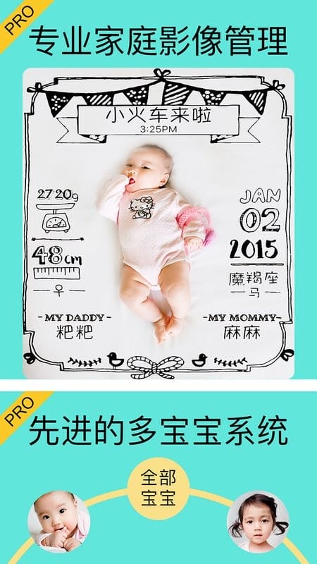 宝宝专属贴纸,“出生卡”、“成长卡”一键生成!更轻松有趣的记录方式,通过你的点滴,给宝宝留下一份回忆,一分钟就可以完成陪伴宝宝一辈子的出生卡!育儿过程再也不会忘记宝宝出生的时刻、身高和体重,更有自动推算的星座和生肖。