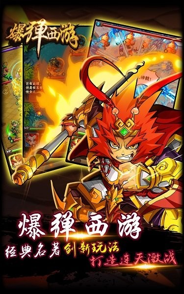 爆弹西游游戏是一款以西游为题材的手机游戏,在这里玩家们能够找到超多种类的玩法,各种各样的新鲜感能够让玩家们在这里打发无聊的时间。游戏中有超多的角色等待着玩家们来收集,让这些角色们能够帮助自己不断的进行冒险,找到超多的道具让自己能够升级,面对更强的敌人也能够胜利,超级的好玩。