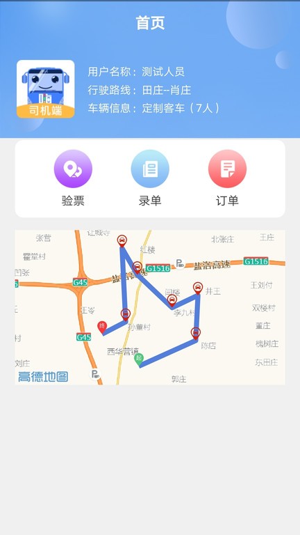 根据平台后台分配的账号司机端司机登录需要输入手机号,密码和车牌号信息进行登录,登录成功以后司机可以查看自己在地图上显示的站点路线班次信息。