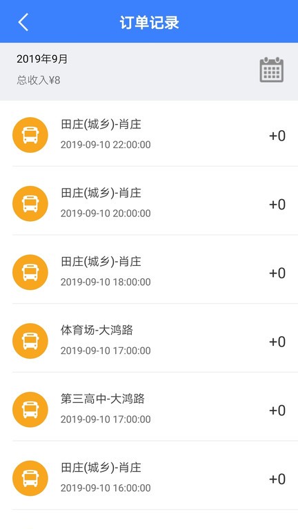 司机可以按照日期对自己的历史订单进行查询;默认按月进行倒序统计,点击订单列表进入订单详情,订单详情中展示该订单的具体信息。