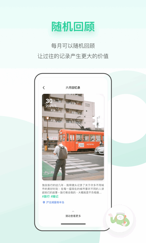 我挺喜欢这种能把碎片化时间利用起来的应用,尤其是可以随时查看过去的内容,回忆起来特别方便。它还有个“每月随机回顾”的功能,感觉能让人更珍惜那些被记录的瞬间。