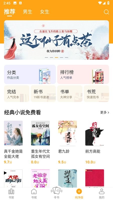 2、根据读者的阅读兴趣爱好来进行推荐,每一本小说都是书源,阅读感极佳