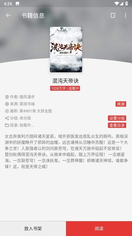 2、很清晰的阅读界面,独特护眼风格,还可以自己导入书源,满足你的看书需求。