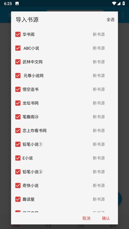 4、内置大量的小说站源,可以自由切换选择,一键加入书架,随时在线阅读追书