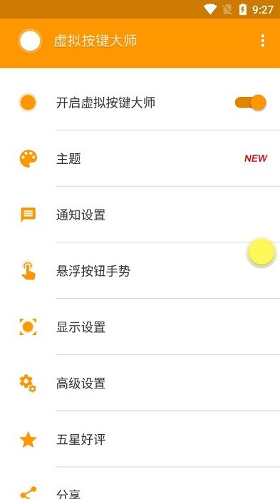 虚拟按键大师软件一款安卓手机辅助工具,类似苹果手机AssistiveTouch。它可以保护您的手机按键,一键直达所有设置项,还有精美的主题每周更新供您免费下载。虚拟按键大师,安卓手机达人必备!