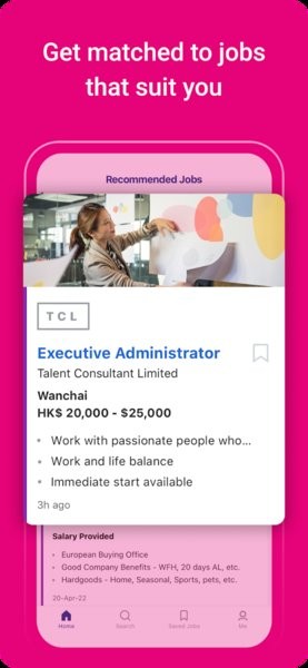 JobsDB中文版是一个帮用户在香港轻松找到好工作的平台。它提供了海量精选职位,还有一堆实用功能,比如筛选职位、定制提醒、管理简历什么的。特别是App里的申请工作和个性化推荐功能,感觉特别方便,适合想要高效求职的人。