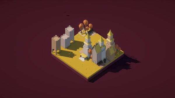 当你开始游戏时,你会得到一个 4x4 到 12x12 的方块岛,屋顶、水、草和树木的颜色是随机选择的。