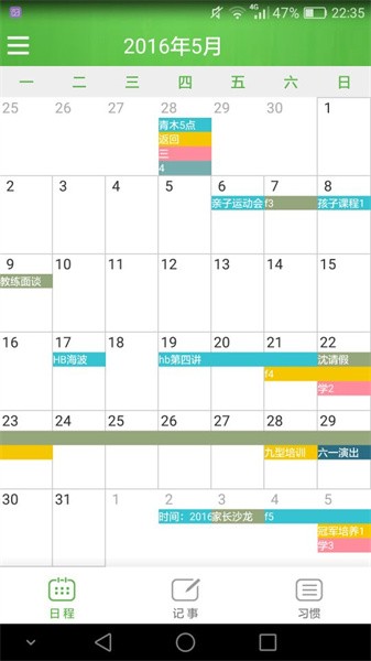 自定义使用不同的颜色标记记录的不同事情,通过醒目的颜色查看记录信息;