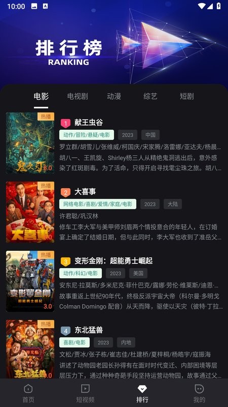 最让我满意的是它的高清画质和多线路切换功能,追剧的时候根本不会卡顿。而且更新频率特别快,每天都有很多新内容上线,热门排行榜也是一目了然。对于喜欢看短视频的人来说,这个app也是一个不错的选择,各种精彩内容都能刷到。