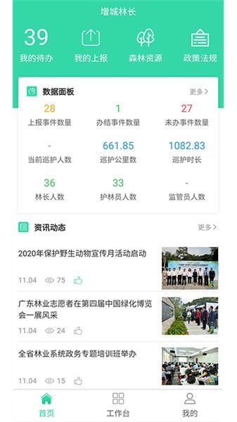 广西智慧林长app是广西本地的官方森林巡护监管服务办公平台,实时监测跟踪,了解森林概况,实时更新最新的资讯动态,待办事项任务一目了然,及时处理,完成巡护工作,政策法规一手掌握,支持在线上报,高效监管,风险预测,保护森林资源,适合护林员使用!