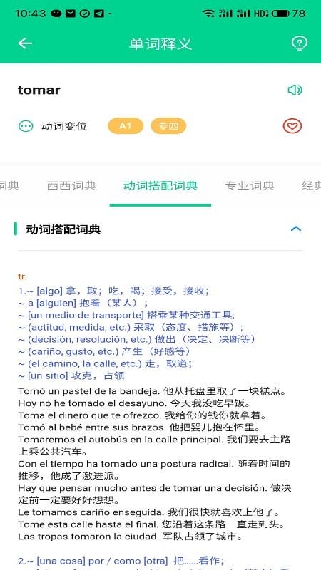 最让我觉得实用的是它的八大场景口语课程,还有每天的听力训练计划,循序渐进地提升语感。而且内置的西班牙语词典也太方便了吧!支持多种语言互译,还配有地道例句,完全不用担心找不到合适的表达方式。