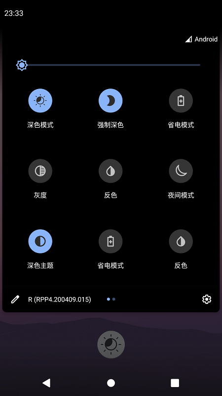 Android 10及以上可用Root尝试切换强制深色,等同于开发者选项的"覆盖'强制启用 SmartDark功能'的设置"、MIUI的"全局反色"等开关。(已适配一加)