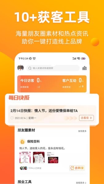进入获客版块,查看各种素材和文章内容,更加高效的进行展业获客