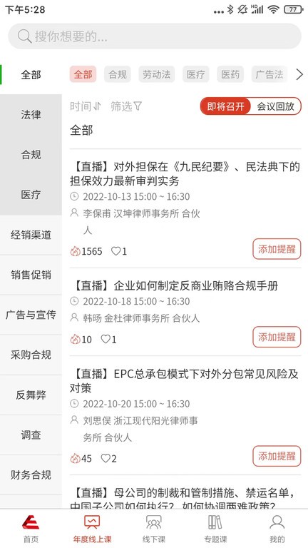 进入会议预告中心,查看即将开始的法律会议