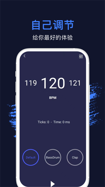 4、节拍速度可自由操作,在此可以随时随地自由的调整乐器节拍器的速度。