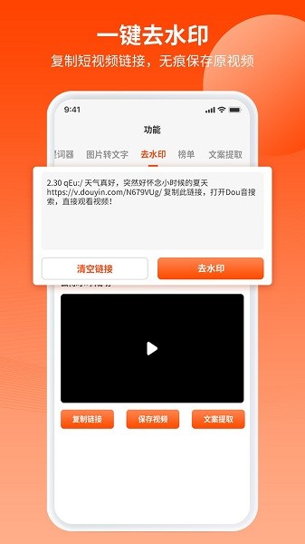 文案提取功能,支持复制视频链接,准确快速一键提取文案,提高办公或学习效率,方便省心,提取文案可复制、可编辑、可使用提词器等多功能于一体的强大文案提取工具。