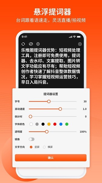 乐推圈提词器,好用的提词器工具软件,可以有效解决直播过程中的忘词问题,软件功能强大,支持短视频文案的提取与文字语音转换操作,可以帮助用户快捷制作自己的短视频与字幕文件,非常方便,有需要的用户可以下载使用!