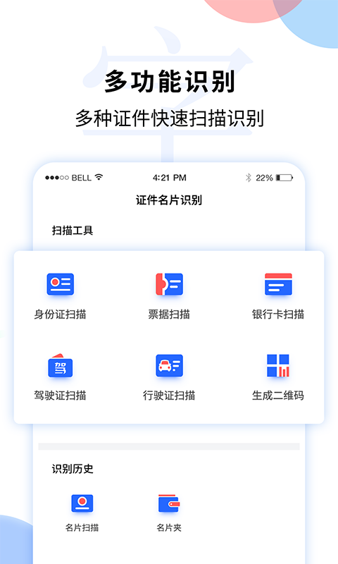 文字识别扫描王是一款小巧实用的文字扫描识别、文字识别工具。您只需要使用相机对着书籍、报纸、文档、证照等进行拍照,即可进行拍图识别、智能高清扫描、精准识别、极速翻译,取字/翻译结果一键获取与分享。