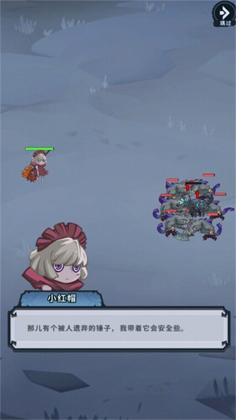 那儿有个被人遗弃的锤子,我带着它会安全些。怎么办,随手拿的锤子,我能对抗这么多怪物吗?使用手指往箭头方向释放技能。刚刚你的能力就是最好的证明,只有你能够解决童话镇的危机。