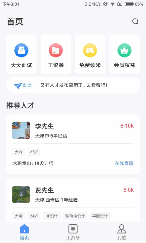 在这里招聘双方可以通过在线聊天的方式轻松的找到中意的人才或中意的岗位。