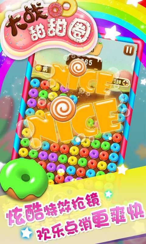 清凉一夏,全民一起大战甜甜圈!炎炎夏日,清新可爱的冰激凌蛋糕风给大家带来一丝清凉。全民休闲,上手简单,只要轻松点击相同颜色的蛋糕圈圈即可完美消除,看似简单而又不简单,关关挑战,你会发现这是在挑战你能力,让你欲罢不能,爱不释手。游戏以糖果蛋糕为主题,Q版的画面风格,轻松欢快的音乐旋律,绝对颠覆你的感官。这个夏天,不仅有欢乐消除,还有冰激凌为伴,超级上瘾,清凉和令人陶醉的消消乐,绝对能在炎炎夏日给你带来一丝冰爽。