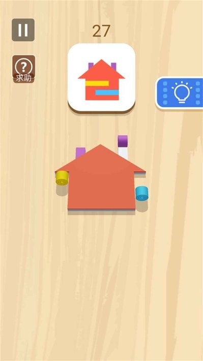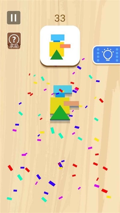 游戏需要通过点击不同颜色图形,最终达成目标图案。