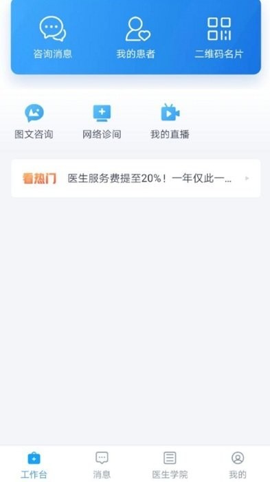嗨医生官方版是为医生打造的线上诊室平台,提供网络诊间,便于医生看病诊疗,支持在线咨询,让医患随时随地沟通交流,打造您的个人专属名片,高效管理我的患者,还支持直播、有医生学院可以学习,极大提高医生工作的效率!