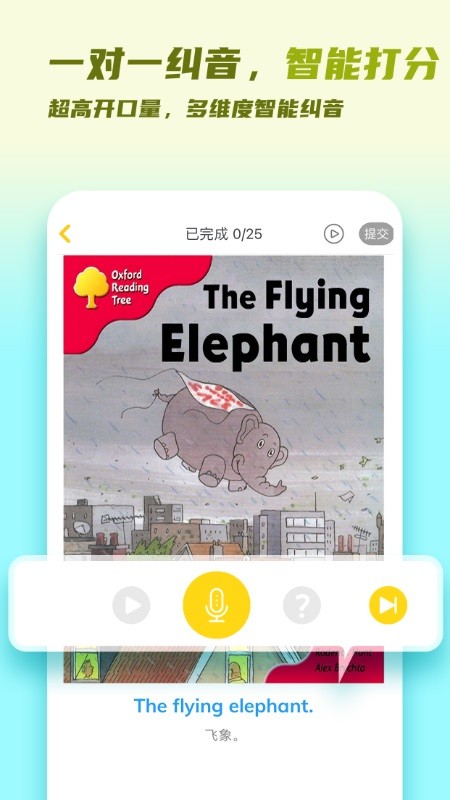 智能纠音:逐字逐句进行发音和语速两个维度的打分纠正,让孩子的英语学习有实时的反馈。