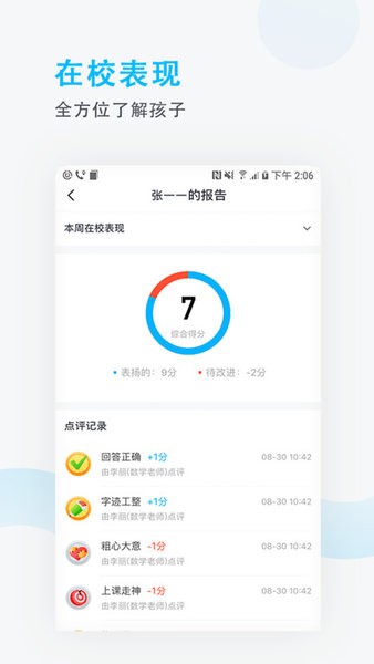 查看老师发布的成绩单和孩子在校的生活学习状态;