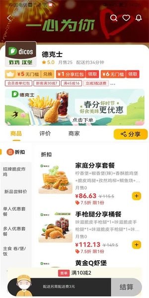 3、随时都可以通过平台下单,让用户不用出门就可以尽享美食。