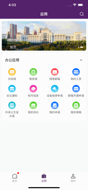 河北旅游职业学院移动办公系统,采用iPhone等智能手持终端设备作为移动终端,通过校园内外、公共场所WiFi环境、移动运营商提供的GPRS、4G、5G等网络,接入学校的网络办公系统,使办公自动化系统的应用摆脱地理空间的约束,实现学校日常工作。通过课表校历、通知公告、会议日程、成绩报告等功能,带给师生不一样的使用体验。