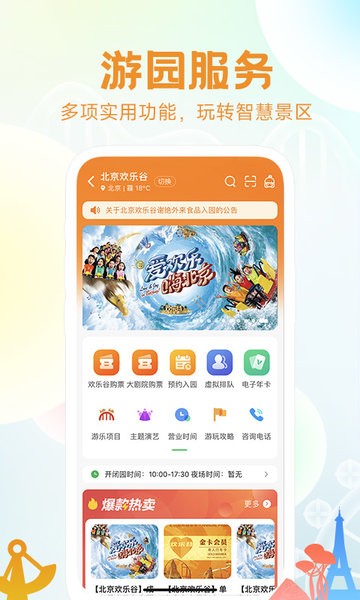 1、可查看到园区和景点的营业时间,迅速掌握时间段;