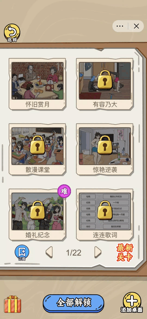 1、游戏采用闯关的形式,每一关都设计了独特的拼图问题。