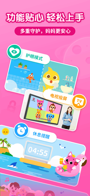 --- 超人气IP:国际知名IP碰碰狐(Pinkfong)、鲨鱼宝宝(Baby Shark)、多奇(Hogi)等,萌趣可爱