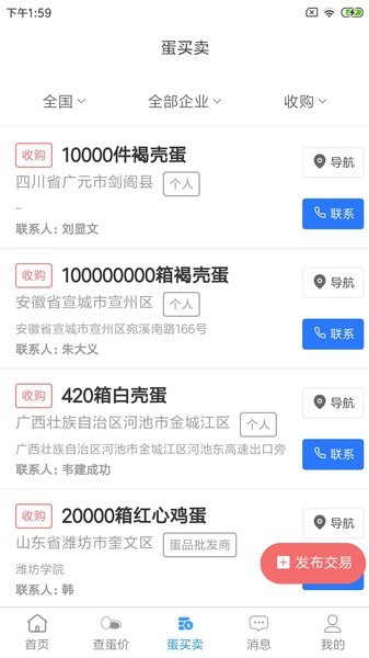 -- 用户可以在平台发布和查看与鸡蛋和鸭蛋的交易信息,提高寻找货源和客源的效率。
