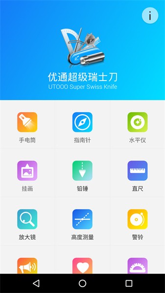 优通超级瑞士刀app是非常好用的一款户外生活工具箱手机软件,在这里用户们能够找到多种帮助用户们能够在户外使用的工具,指南针、气压、手电筒、测量、放大镜、水平仪、警铃等等等等,让用户们能够在户外旅行的时候更加的便捷,超级的好用。