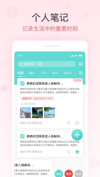 记录生活中的灵感,以及琐碎事务,―目了然实现分类管理,方便查找;