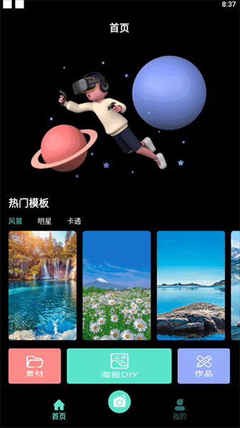 3、大量素材供你选择,明星,卡通,风景等等,自由打造体验