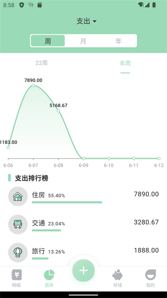 2、自动生成收支数据报表,查看账目非常清晰明了,软件界面简洁,操作方便。