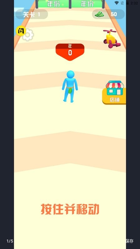 1、关卡的难度会随着不断过关而增加,控制自己的小人在赛道上跑酷;
