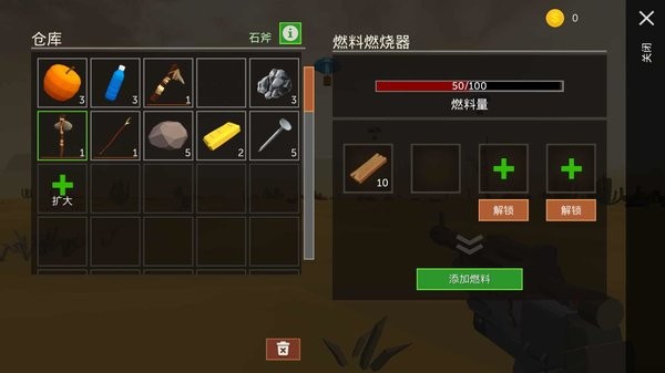 2、点击右边的收集键位进行收集;之后不断的前往地图四处收集可以利用的资源;