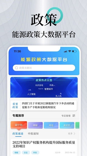 涵盖政策、要闻、电力、煤炭、石油、新能源及新能源汽车等类别,每天为用户聚合筛选数百篇最有价值的行业专属资讯。