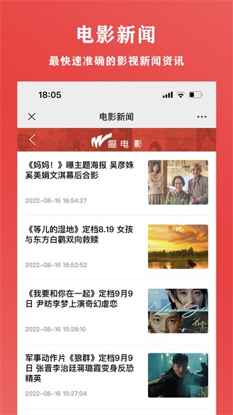 瞄电影app是非常好用几个的一款电影行业的新闻资讯手游软件,在这里用户们能够看到非常多的与各种最新电影和电影新闻有关的新闻资讯,帮助行业内的用户们能够实时查看,超级的好用。
