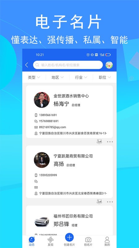 以个人或机构形式的名片,在动态广场、地图模式进行动态展示