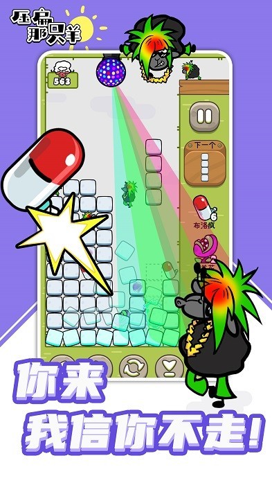 2、压扁那只羊结合了传统俄罗斯方块玩法,又有动作形态多变,非常机智会闪躲的小绵羊。