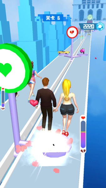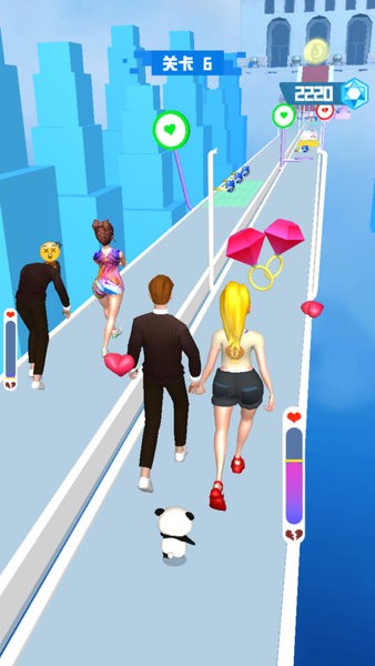 游戏中你可以和其他情侣一起哄女友开心,实时调整道具选择,让她更喜欢你。同时,也可以想办法让对手的情侣产生矛盾,增加趣味性。操作很简单,只需要滑动屏幕就能参与,单手也能轻松玩转。关卡设计丰富有趣,既有经典的竖版跑酷玩法,又有浪漫的场景画面,适合各个年龄段的人群。