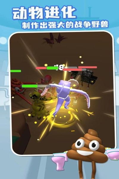 游戏的优势在于道具丰富,模式多样。你可以解锁各种动物,创造独特的形象,并通过完成任务提升实力,获得奖励。战斗轻松愉快,适合放置挂机,打发时间。虽然玩法简单,但每次融合都充满惊喜,特别是那些奇葩生物的设计,总能让人会心一笑。