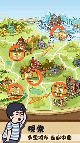 最让我喜欢的是它的彩蛋设计,点一点画面就可能发现惊喜,而且每个城市都有独特的玩法,比如去重庆吃火锅、在拉萨找藏狐,甚至还能手刃情侣(开玩笑啦)。游戏的成就系统也很吸引人,收集控一定会爱不释手。再加上放置玩法,轻轻松松就能完成任务,特别适合像我这样懒得动脑的人。