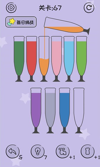 倒沙我贼溜这款手机游戏看起来挺有意思的,玩法就是通过倒来倒去把试管里的颜色分层,最后每个试管里只能有一种颜色才算过关。规则听起来简单,但实际操作可能需要一点策略和耐心。游戏中你可以选择不同风格的背景画面,视觉体验应该还不错。操作方面也挺直观,轻击水瓶就能开始,不过倒的时候要确保有足够空间才行。
