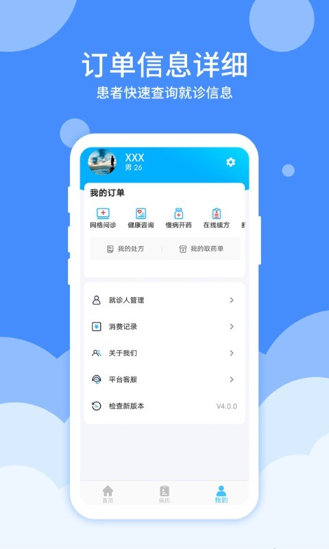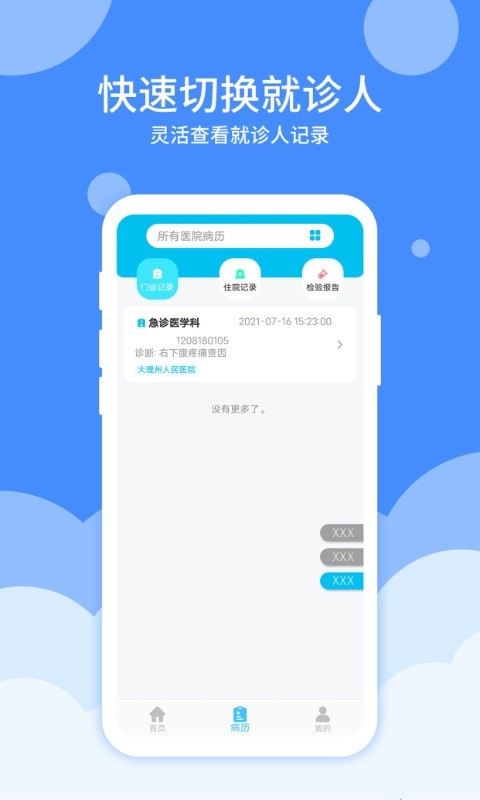 患者病历――让患者可以在线上查询线下的就医病历。